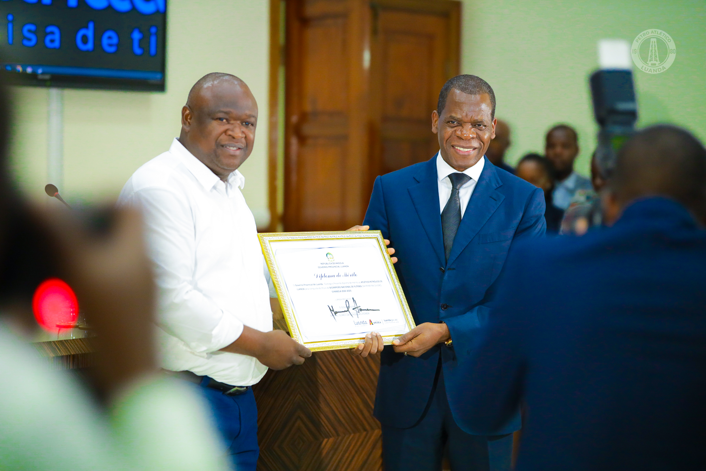 No âmbito da conquista do Girabola 2022/23, o segundo de forma consecutiva, o Petro de Luanda foi recebido esta quarta-feira, 17 de Maio, por Sua Exa. Sr. Governador de Luanda, Eng.º Manuel Homem, no Governo Provincial de Luanda, num acto que serviu de apresentação do troféu do 17º título dos tricolores na categoria rainha do futebol nacional.