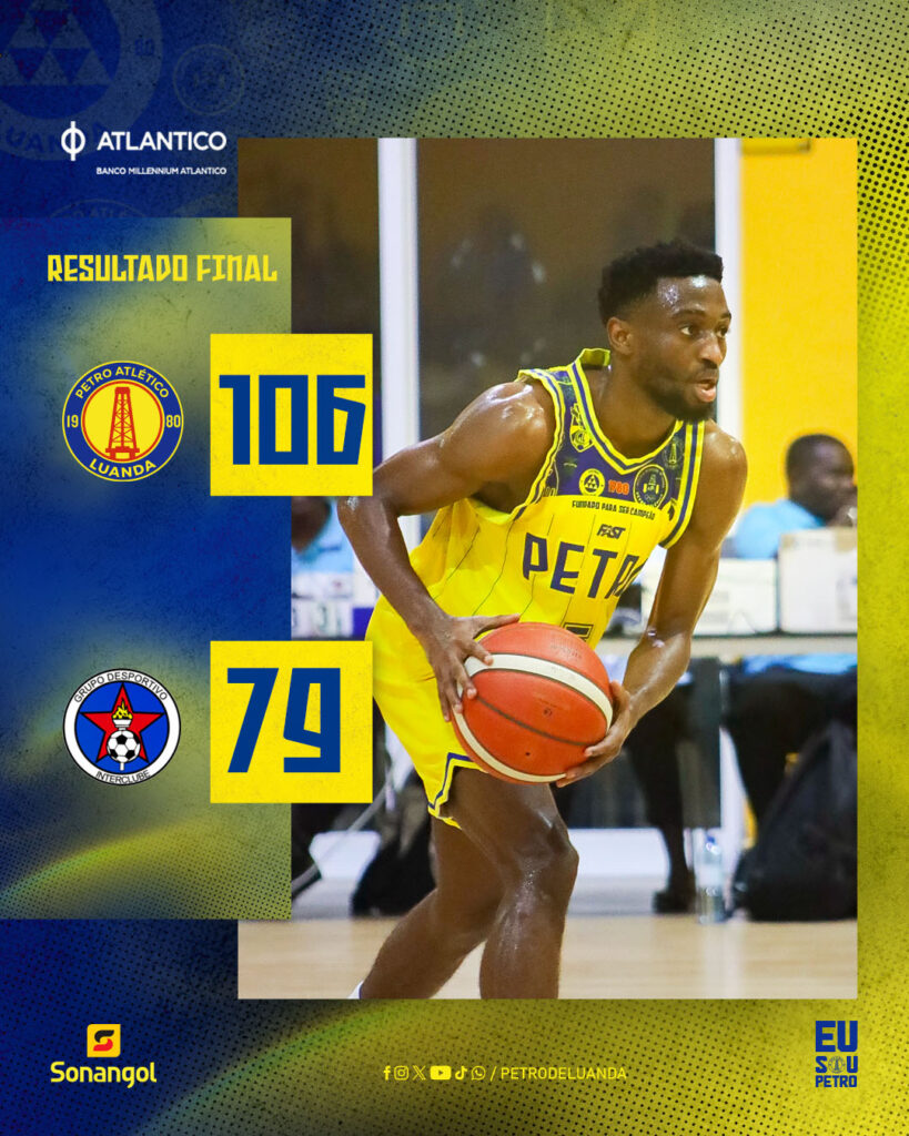 COM AUTORIDADE NO UNITEL BASKETVer maisBasquetebol03/06/2026O Petro de Luanda venceu, na noite desta sexta-feira, o Interclube de Luanda por expressivos 106–79, em partida referente à…